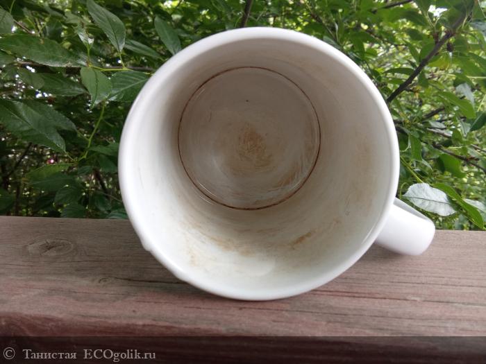 Несколько дней мне довелось провести в больнице. Когда вернулась домой, увидела кружку мужа вот в таком состоянии. Нет, он её мыл. Но поверхностно и без геля. Кофе и чай ему этим воспользовались.