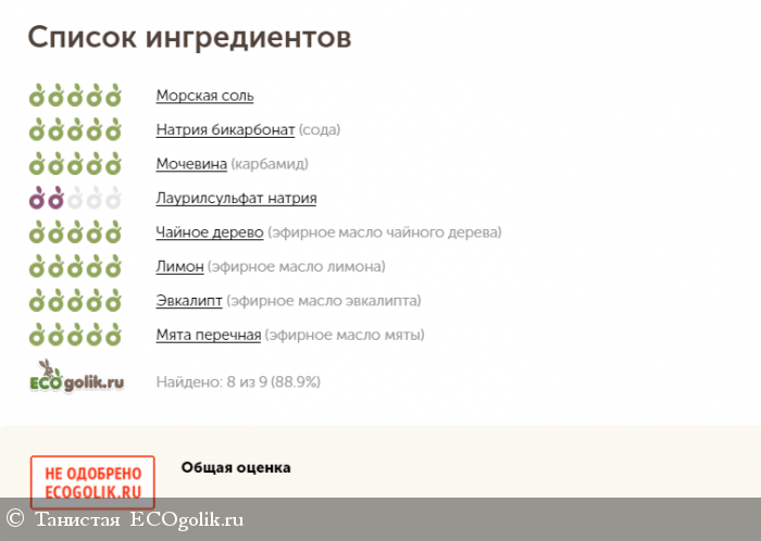 Есть и минус: в состав входит лаурилсульфат натрия. Причём на сайте производителя данное вещество не обозначено, просто написано: мягкие ПАВ (со щадящим воздействием на кожу). Однако у сервиса проверки на «Экоголике» другое мнение…
