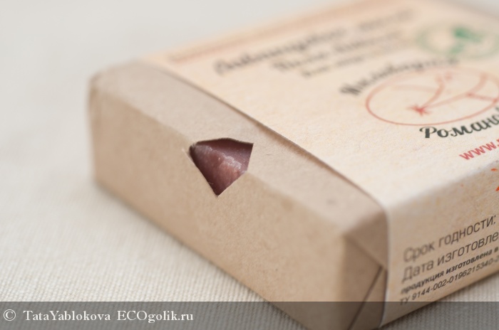 Сам по себе брусочек не совсем прямоугольной формы, с одной стороны он "спилен" под углом. В принципе на удобство использования это никак не влияет, он с легкостью помещается в ладони и не выскакивает при намыливании.