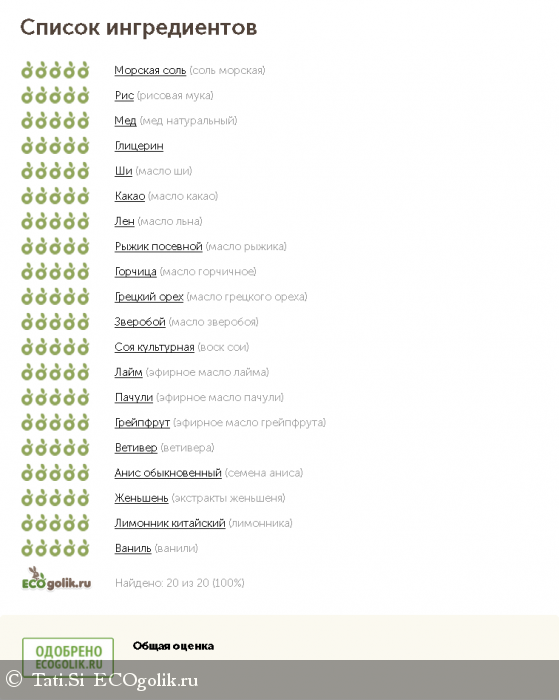 20 из 20, в яблочко!! Далеко не каждый отзыв мне попадаются средства, к составу которых нечего добавить и даже в принципе объяснять ничего не надо, все компоненты очень прозрачны. Нет и намека на ненатуральность)