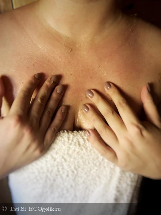 Однако буквально через секунд 30 растирания в парилке скраб на коже выглядит примерно так:
