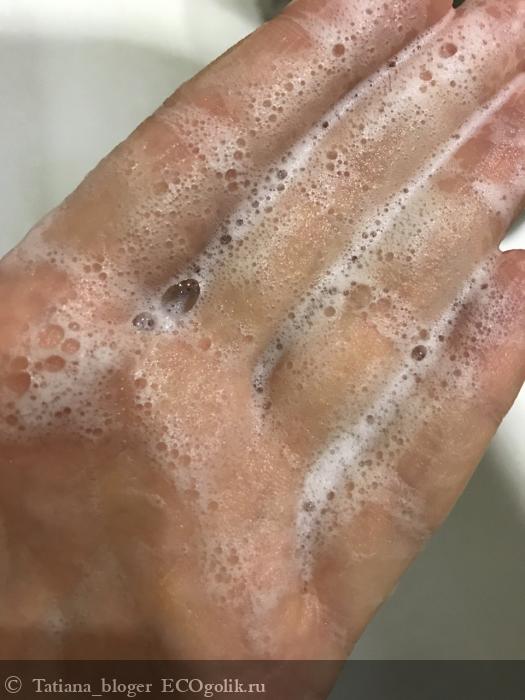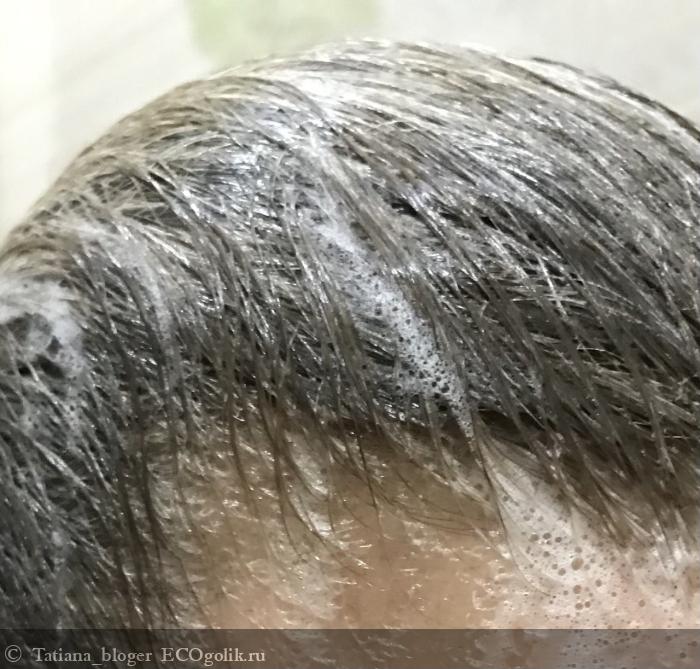 - Шампунь отлично пенится, пенка мягкая и нежная, бережно очищает кожу головы, не сушит и не спутывает волосы.