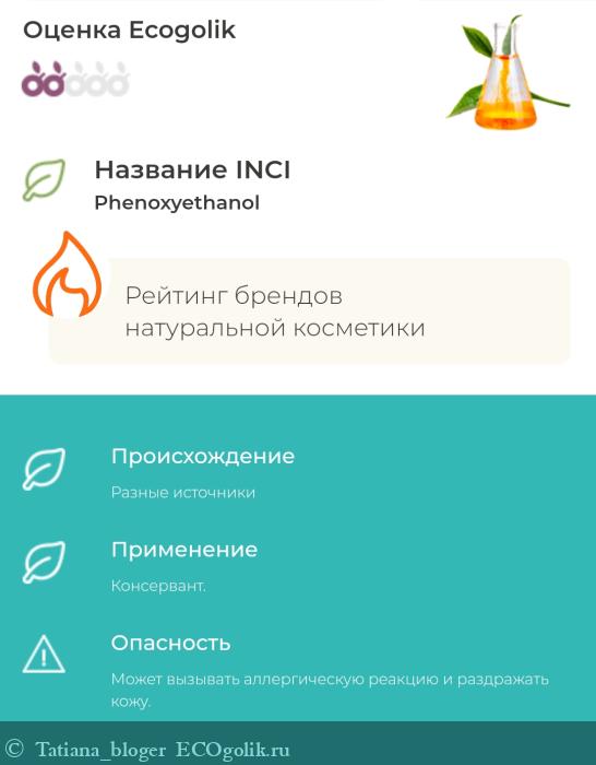 эпигаллокатехин-3-галлата) (Camellia Sinensis Leaf Extract 0,5% (70% Epigallocatechin-3-Gallate)), солюбилизатор из кокосового масла (Polyglyceryl-4 Caprate), консервант Sensicare C1000 (Phenoxyethanol, Glyceryl Laurate).