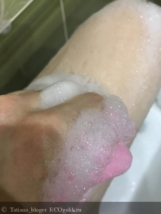 Наношу немного геля на мочалку,