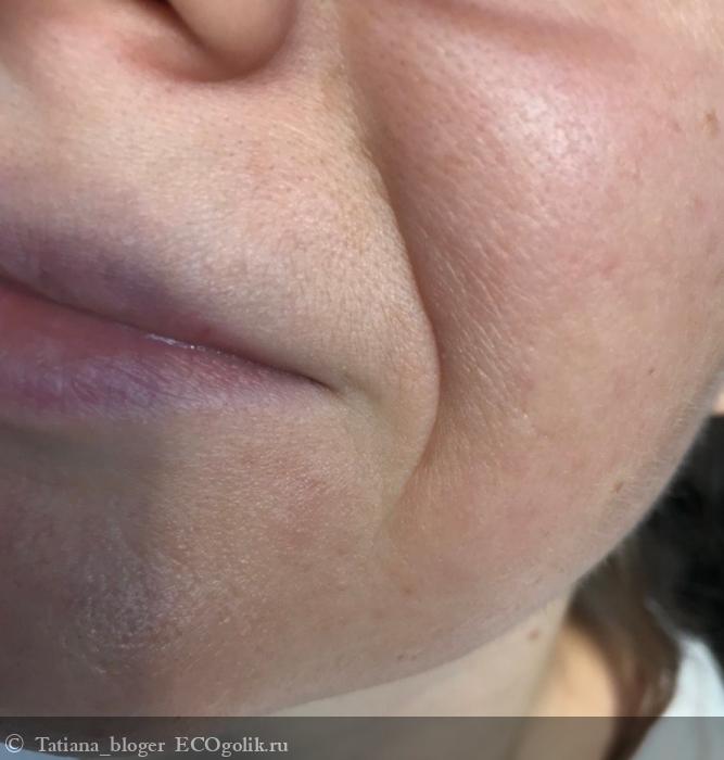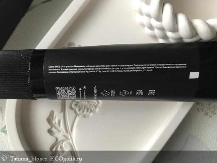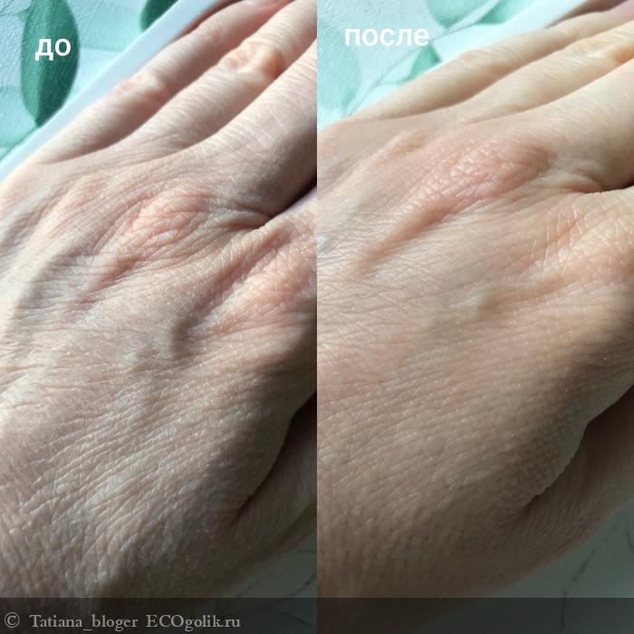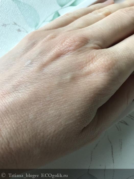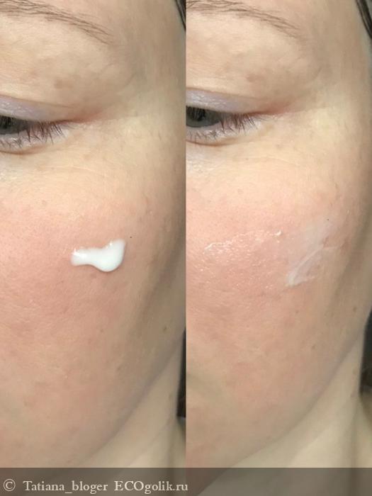 - Лёгкая консистенция, комфортна в использовании. Крем легко наносится и распределяется по коже, быстро впитывается, не оставляет липкости и плёнки.