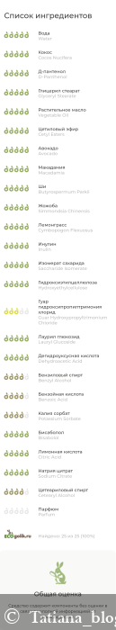 Aqua, Cocos Nucifera Oil, D-Panthenol, Glyceryl Stearate, Olus Oil, Cetyl Esters, Persea Gratissima Oil, Macadamia Integrifolia Seed Oil, Shea Butter, Simmondsia Chinensis, Cymbopogon Citratus Extract, Inulin, Saccharide Isomerate, Hydroxyethylcellulose, Guar Hydroxypropyltrimonium Chloride, Lauryl Glucoside, Dehydroacetic Acid, Benzyl Alcohol, Benzoic Acid, Potassium Sorbate, Bisabolol, Citric Acid, Sodium Citrate, Cetearyl Alcohol, Fragrance