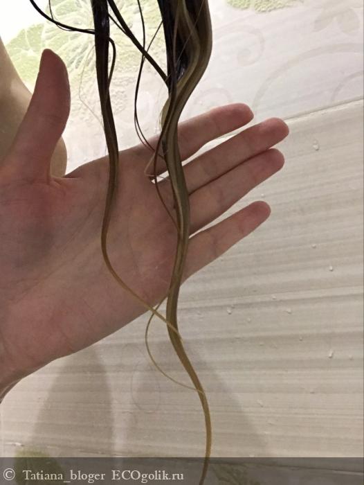 - Имеет лёгкую кремовую текстуру. Легко наносится и распределяется по волосам.
