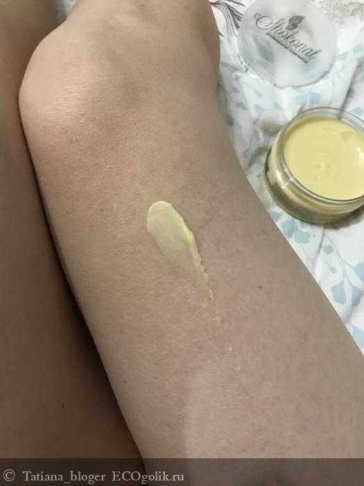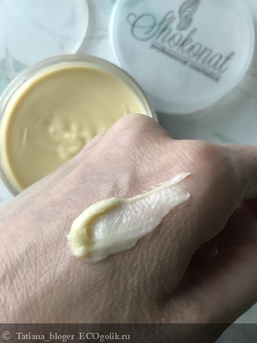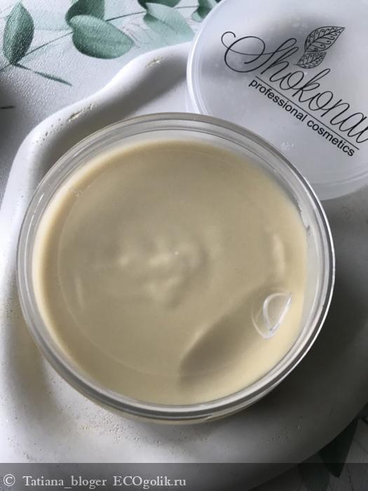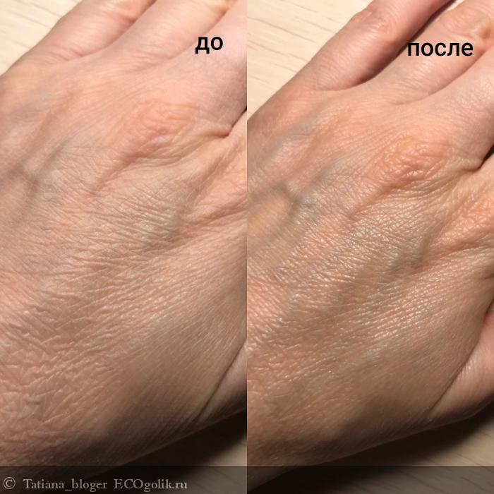- Плотная густая консистенция, комфортная в использовании. Легко распределяется по коже, быстро впитывается. Не оставляет липкости и плёнки.