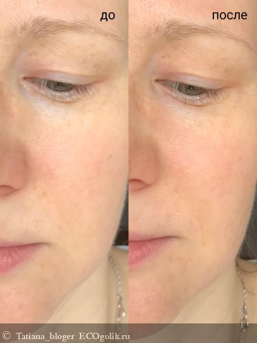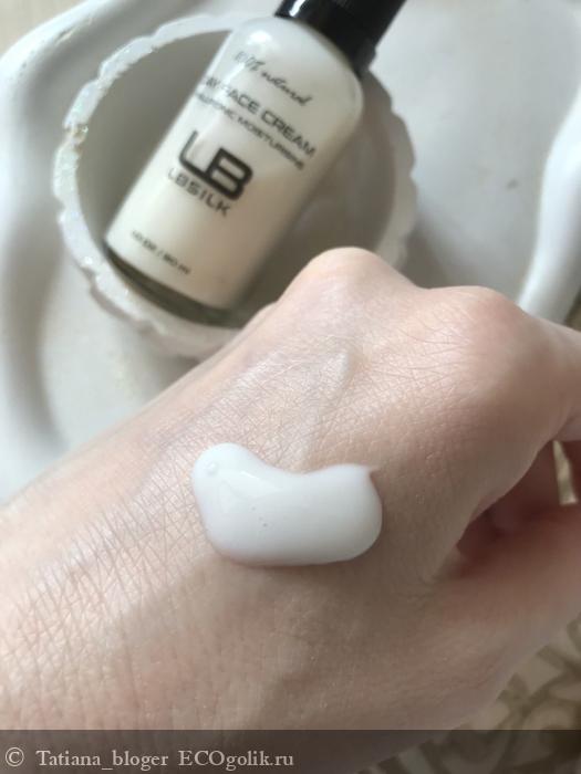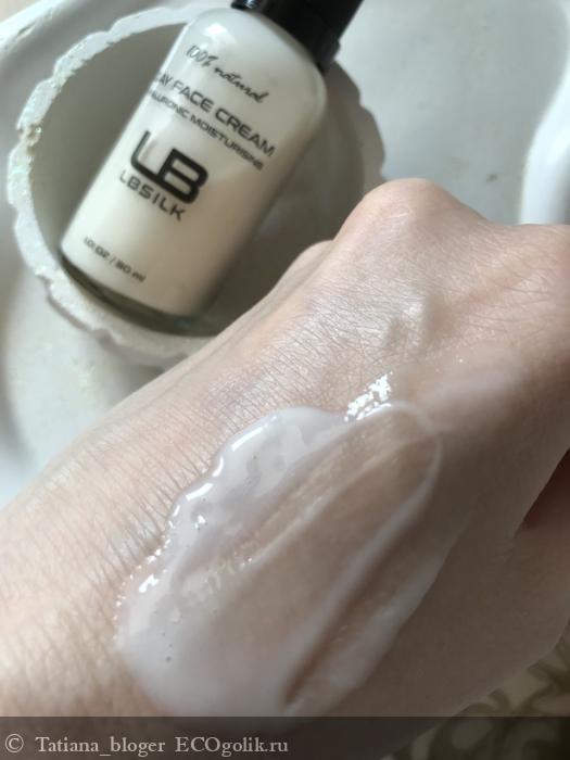 - Текстура. Лёгкая, идеальна на лето. Крем легко наносится и распределяется по коже, не оставляет липкости, быстро впитывается.