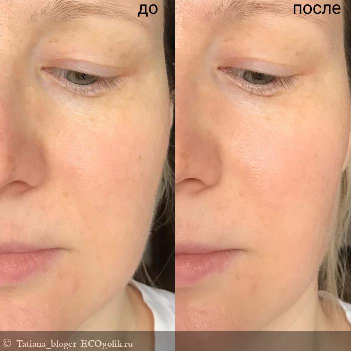 - Текстура. Комфортная в использовании. Легко наносится и распределяется по коже. Быстро впитывается, не оставляет липкости и плёнки на коже.