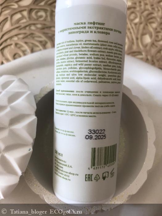 Маска лифтинг с меристемными экстрактами почек винограда и клевера от бренда Miraflores