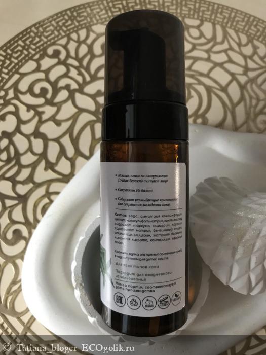 - Пенка очищает бережно, не сушит и не стягивает кожу. Легко смывается водой.