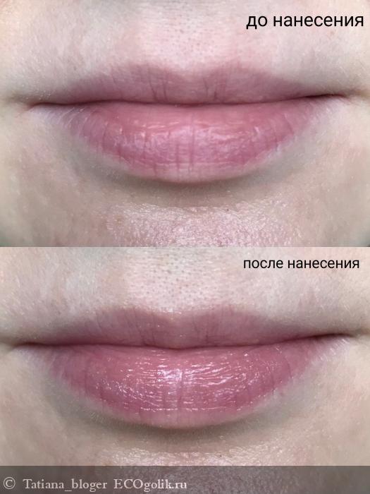 - Текстура очень приятная, легко наносится и распределяется по коже губ, на губах ощущается словно шёлк. Невероятно приятно.
