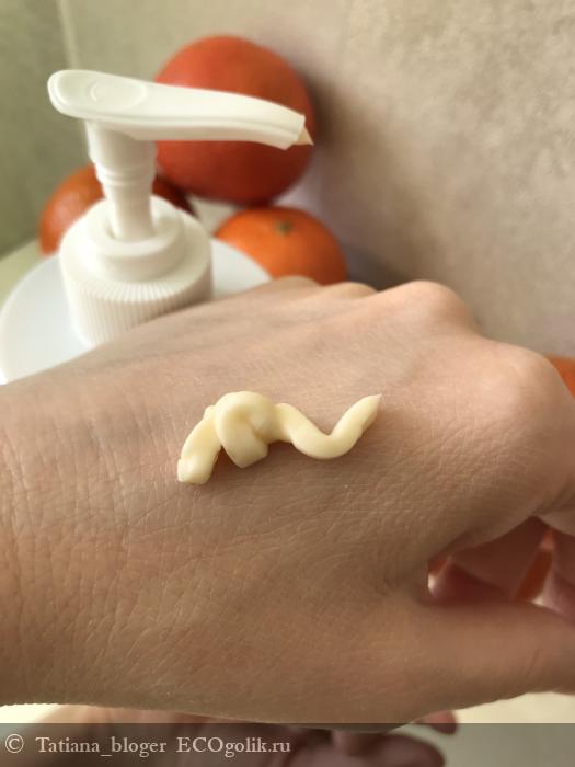 Крем легко распределяется по коже. От тепла крем слегка начинает таять.