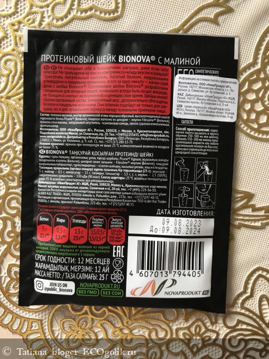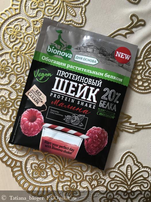 Натуральный протеиновый шейк Bionova\u00ae с малиной без добавления сахара, содержит 20 % белка, медленные (правильные) углеводы и пищевые волокна, в том числе инулин, поэтому он надолго придает чувство сытости, наполняя организм энергией и поддерживая аминокислотный баланс на протяжении длительного периода времени.