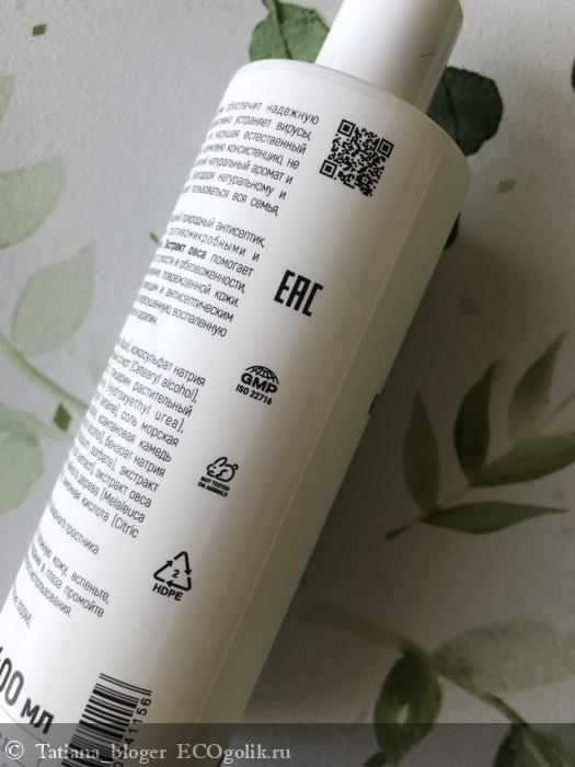 Aqua (вода дистиллированная), Sodium cocosulfate* (кокосульфат натрия), Cetearyl alcohol (цетилстеариловый спирт), Glycerin (глицерин), Cocamidopropyl betaine (кокамидопропил бетаин), Sea salt (соль морская), Coco-glucoside (кокоглюкозид), Sodium benzoate (бензоат натрия), Potassium sorbate (сорбат калия), Xanthan gum (ксантановая камедь), Hydroxyethyl urea (гидроксиэтил мочевина), Melaleuca alternifolia (tea tree) leaf essential oil (эфирное масло чайного дерева), Benzyl alcohol (бензиловый спирт), Juniperus communis fruit extract (экстракт можжевельника), Avena sativa extract (экстракт овса), Citric acid (лимонная кислота). * является мягким пав получаемым из кокосового масла, не является опасным SLS, разрешён международным стандартом ECOCERT