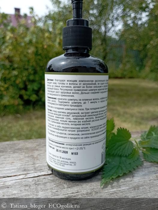 отвар крапивы двудомной, экстракт цветов календулы, экстракт корня имбиря, мягкая «зеленая» моющая основа*, натуральный свекольный бетаин, экстракт плодов мыльного дерева, природная каменная соль, лимонная кислота, бензиловый спирт, аллантоин, полиглицерил полирицинолеат, коньяк маннан (из клубней растения Аморфофаллус коньяк), эфирное масло розы, сорбиновая кислота, янтарная кислота.