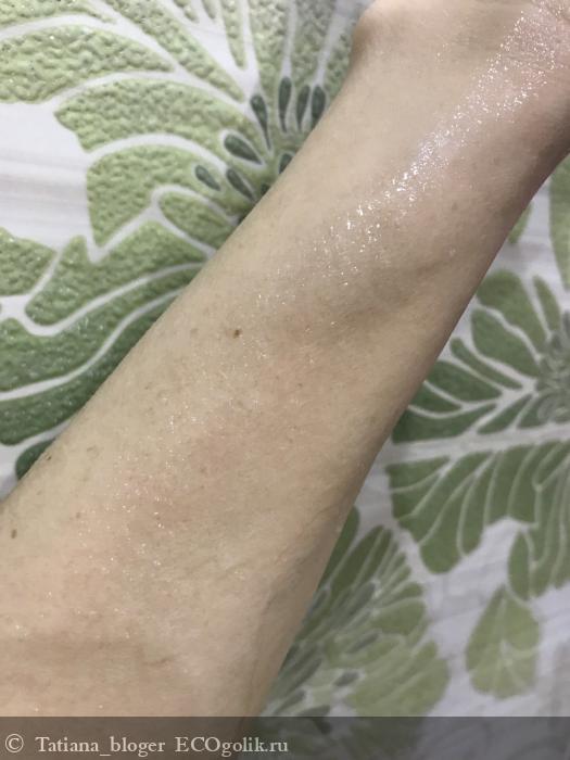 - Скраб не оставляет плёнки на коже, липкости и дискомфорта.