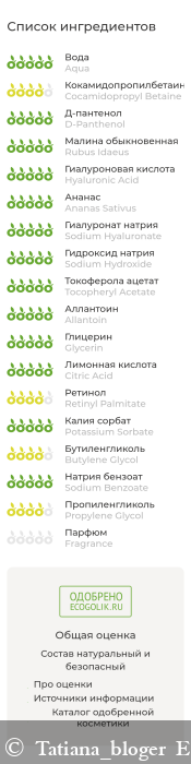 Aqua, Cocamidopropyl Betaine, D-Panthenol, Rubus Idaeus, Hyaluronic Acid, Ananas Sativus, Sodium Hyaluronate, Sodium Hydroxide, Tocopheryl Acetate, Allantoin, Glycerin, Citric Acid, Retinyl Palmitate, Potassium Sorbate, Butylene Glycol, Sodium Benzoate, Propylene Glycol, Fragrance