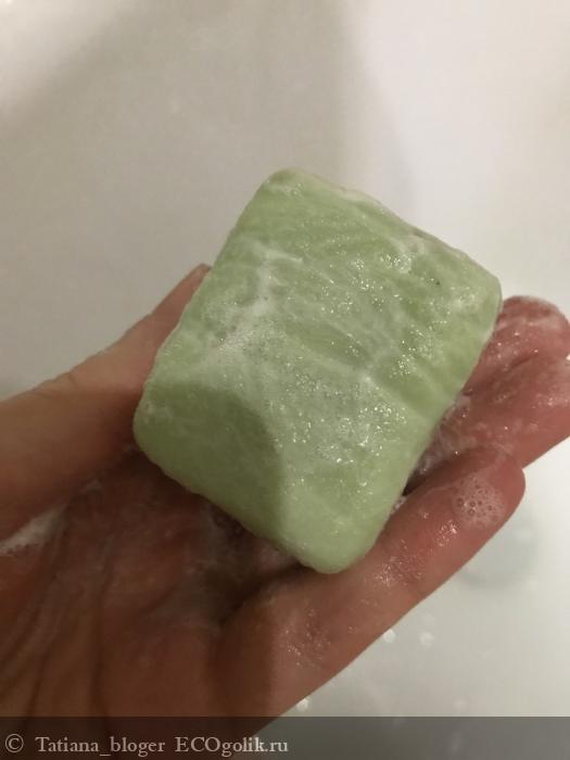 Tatiana_bloger: Твёрдый шампунь, который отлично очищает кожу головы. Использовала шампунь без бальзама для волос, показываю результат.