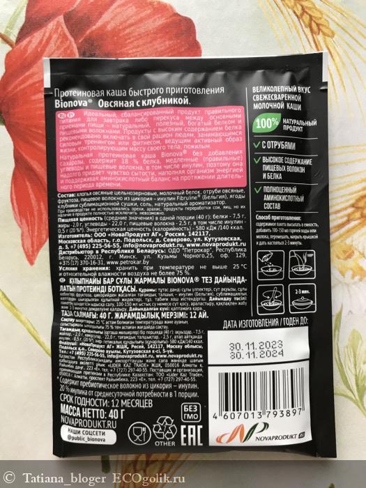 Хлопья овсяные, концентрат молочного белка (Швейцария), отруби овсяные, нектар органической агавы порошкообразный, пищевое волокно из цикория – инулин (Бельгия), ягоды клубники сублимационной сушки, соль, натуральный ароматизатор. Содержит сахара природного происхождения.