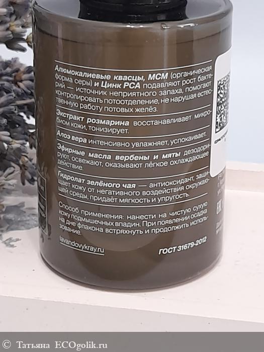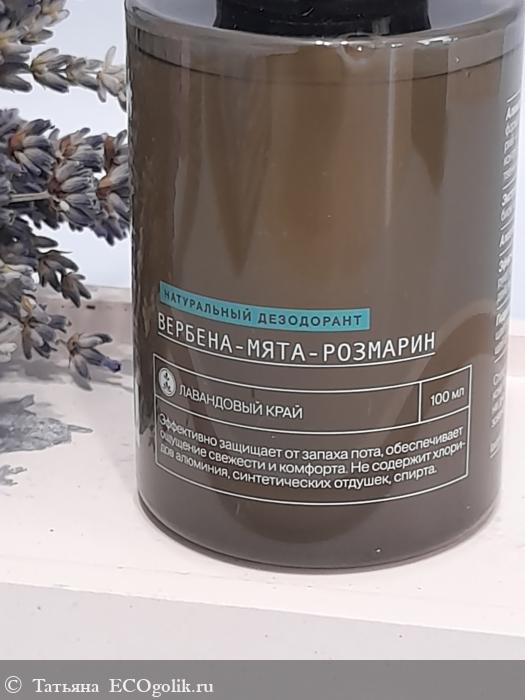 Татьяна: Дезодорант натуральный спрей "Вербена - мята - розмарин" Лавандовый край - защищает от запаха пота, не оставляет следов на одежде и коже и аромат очень приятный!