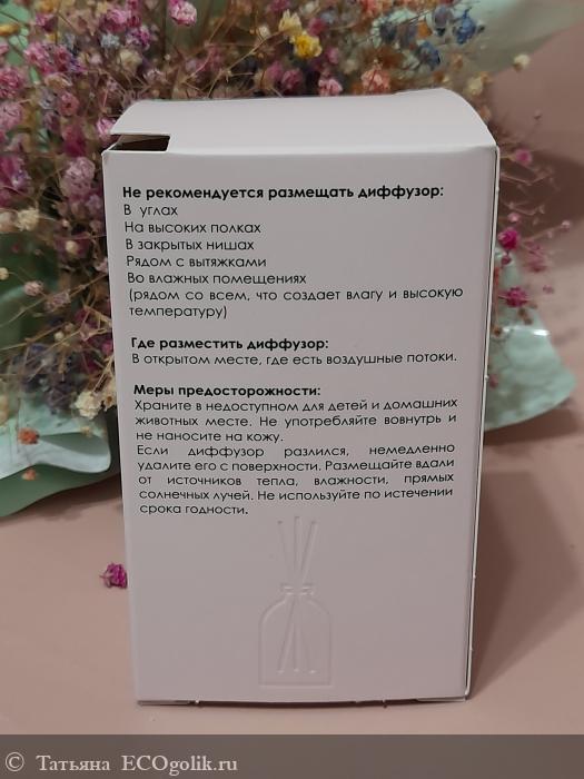 Диффузор находится в картонной коробочке нежного розового цвета.