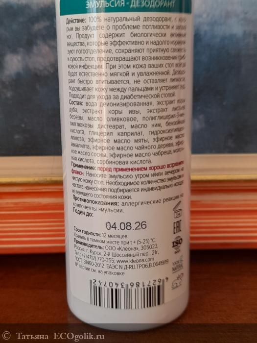 В этом отзыве хочу поделиться впечатлением об использовании Эмульсии-дезодоранта для устранения запаха и потливости ног Kleona