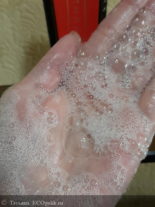 Гель можно использовать как по прямому назначению, так и в качестве пены для ванны. Я наношу небольшое количество средства на мочалку или просто вспениваю между ладонями, а далее переношу на кожу массажными движениями.