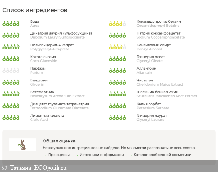 Aqua, Cocamidopropyl Betaine, Disodium Lauryl Sulfosuccinate, Sodium Cocoamphoacetate, Polyglyceryl-4 Caprate, Benzyl Alcohol, Coco-Glucoside, Glyceryl Oleate, Parfum, Allantoin, Glycerin, Adonis Amurensis Extract, Chelidonium Majus Extract, Helichrysum Arenarium Extract, Scutellaria Baicalensis Root Extract, Tetrasodium Glutamate Diacetate, Potassium Sorbate, Citric Acid, Glyceryl Laurate