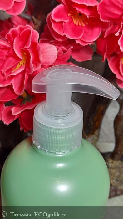 Для удобства использования увесистый флакон оснащен помповым дозатором.