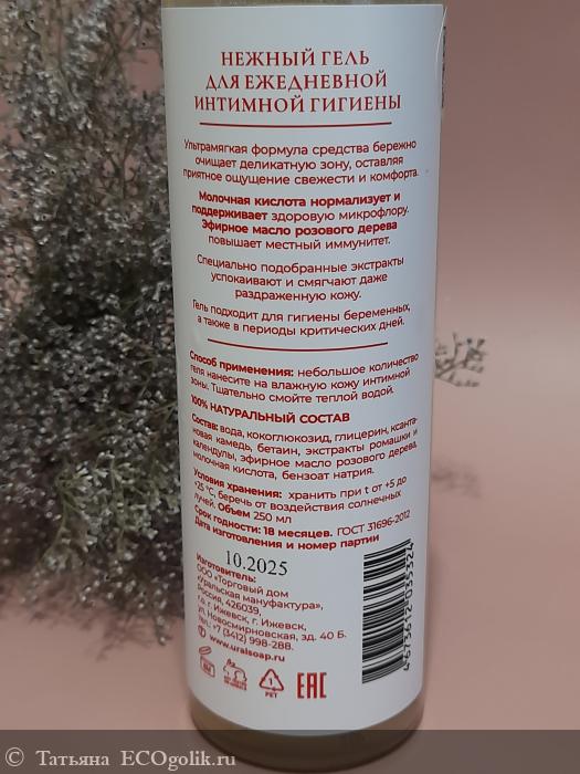 Гель отлично очищает кожу и слизистую, успокаивает их. Никаких неприятных ощущений типа сухости и стянутости нет. Благодаря натуральному составу использование совершенно безопасно.