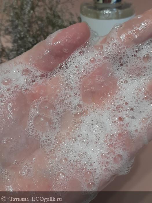 Расход совсем небольшой, так как гель просто замечательно пенится. Пенка получается пушистая, плотная, нежная.