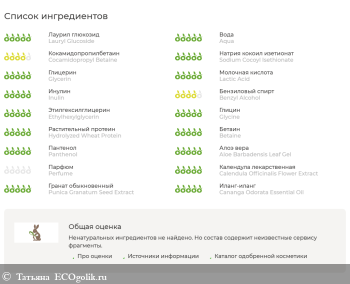 Lauryl Glucoside, Aqua, Cocamidopropyl Betaine, Sodium Cocoyl Isethionate, Glycerin, Lactic Acid, Inulin, Benzyl Alcohol, Ethylhexylglycerin, Sodium Сitrate, Glycine, Hydrolyzed Wheat Protein, Betaine, Panthenol, Aloe Barbadensis (Aloe Vera) Leaf Gel, Perfume, Calendula Officinalis Flower Extract, Chamomilla Recutita Flower Exctract, Punica Granatum Seed Extract, Cananga Odorata Essential Oil, Citrus Aurantum Dulcis (orange) Oil.