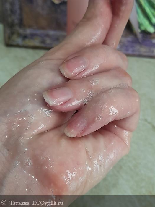 Я наношу небольшое количество геля на влажную кожу и распределяю нежными массажными движениями, далее смываю водой комфортной температуры.