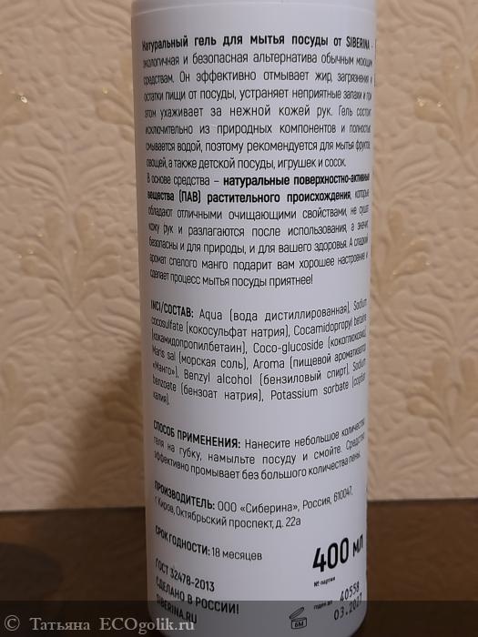 Гель для мытья посуды, овощей и фруктов "Манго" SIBERINA я оцениваю на пять баллов и рекомендую к использованию.
