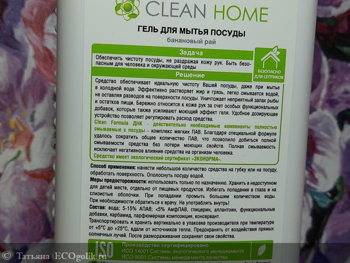 Гель для мытья посуды "Профессиональная забота" Банановый рай Clean Home Professional от меня получает высший балл. Рекомендую!