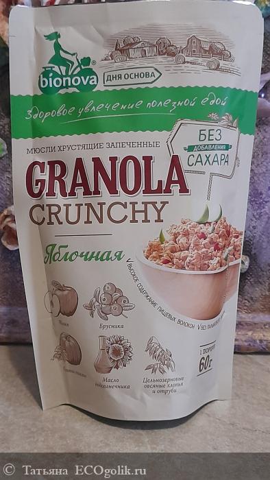 Еще один 100% натуральный продукт от российского производителя Bionova - мюсли хрустящие запечённые Granola Grunchy яблочные.