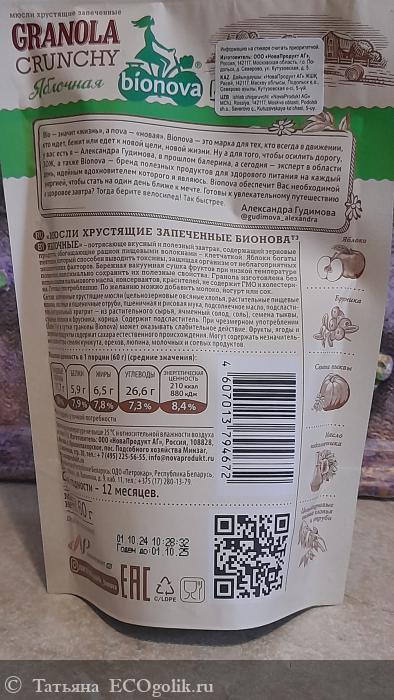 Татьяна: Гранола без сахара Яблочная Bionova - вкусно, сытно и полезно!