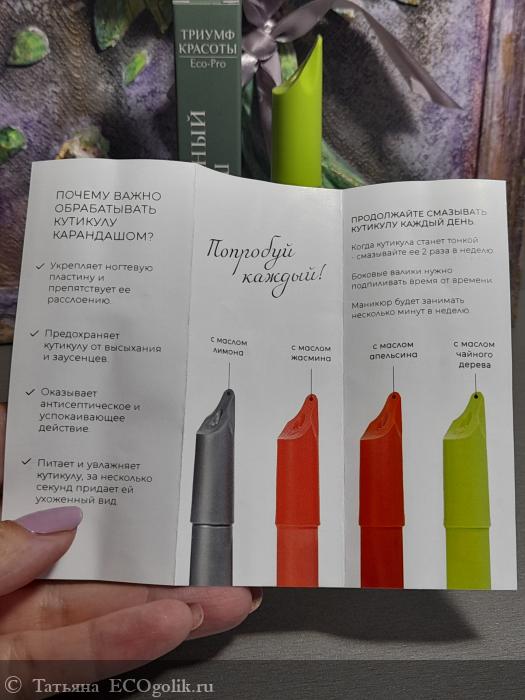Татьяна: Карандаш для удаления кутикулы с маслом чайного дерева и экстрактом алоэ Триумф Красоты - приятный аромат, отлично работает!