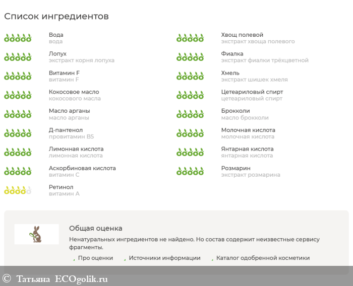 Вот, что о составе сообщает сайт Экоголик: