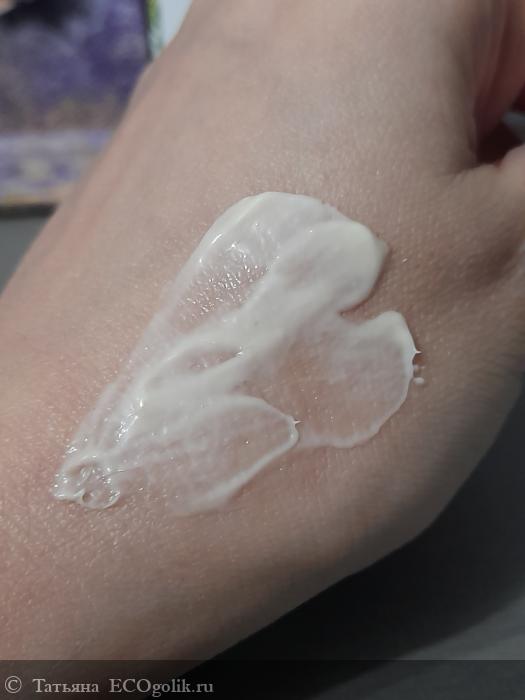 Крем золотистого цвета, густой, имеет однородную легкую текстуру. Быстро впитывается, не оставляет ощущения жирности и липкости на коже.