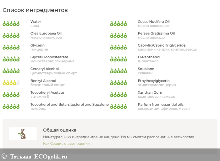 масло кокосовое; масло оливковое; масло авокадо; глицерин; воск эмульсионный; каприлик каприк триглицериды; моностеарат глицерина; д-пантенол; цетилстеариловый спирт; сквалан; бензиловый спирт; этилгексилглицерин; экстракт бархата; витамин е; ксантановая камедь; композиция эфирных масел