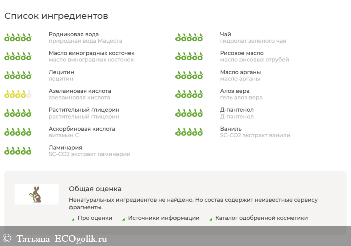 Сайт Экоголик вот так дает разбор состава: