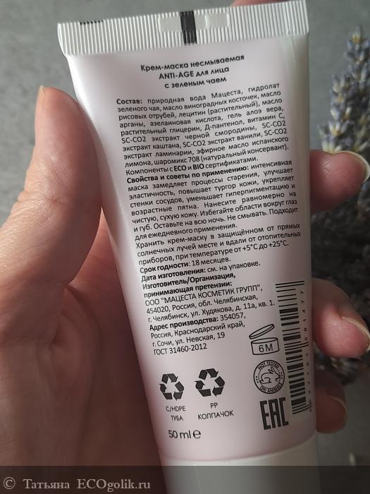 Татьяна: Крем маска несмываемая ANTI-AGE для лица с зеленым чаем MATSESTA - маска с фруктово-конфетным ароматом и просто шикарным составом