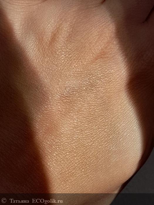 Я наношу немного молочка на очищенную кожу и мягкими массажными движениями втираю его до полного впитывания. На поверхности остаются только мелкие блесточки, которые блестят и переливаются, а само средство полностью впитывается в кожу не оставляя липкости, жирности или других неприятных ощущений.