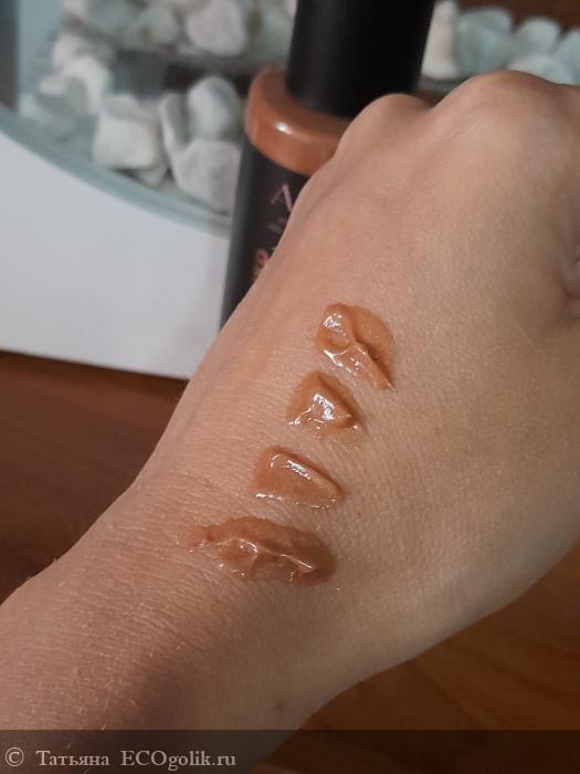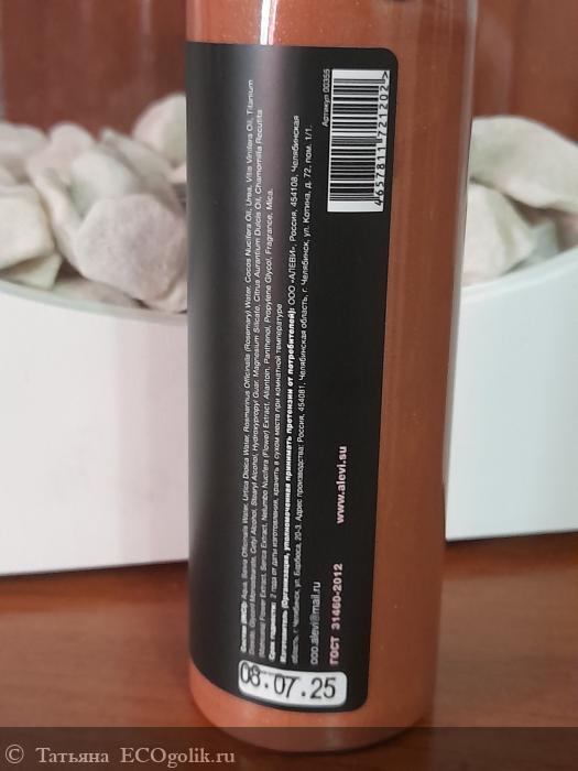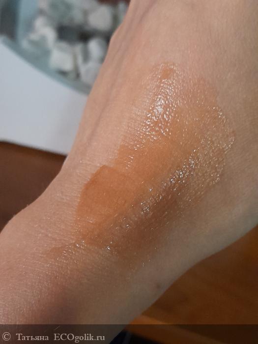 Средство средней густоты. Оно темно-золотистого цвета, так как в составе большое количество мелких блесточек, которые и придают то самое сияние! Аромат сказочно приятный, некоторое время я ощущаю его на коже!