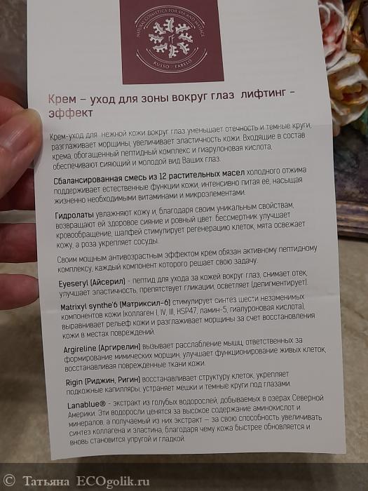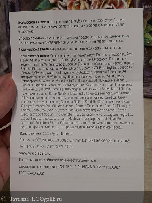 Татьяна: Крем-уход для кожи вокруг глаз с лифтинг-эффектом Russo Fabelo - нравится красивое оформление, для важно, что не оставляет липкости