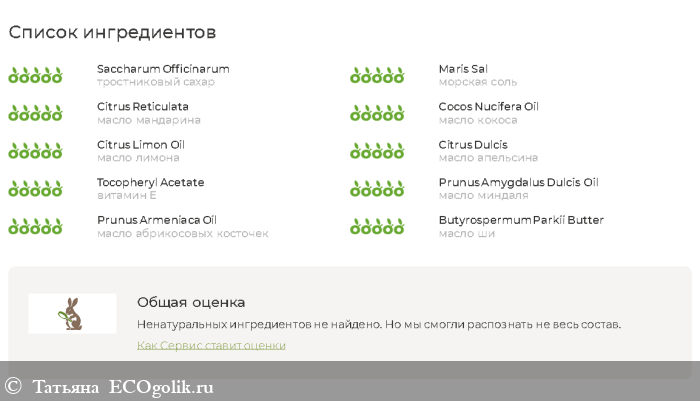 - В качестве скрабирующих частичек - тростниковый сахар и морская соль.