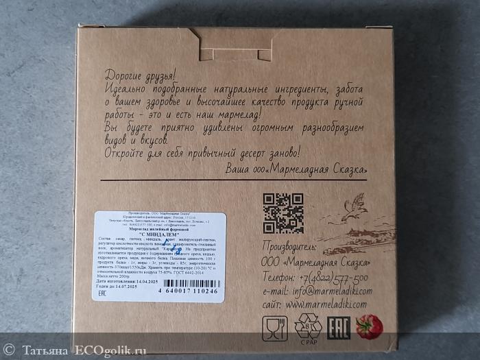 Мармелад с миндалем Мармеладная Сказка от меня получает высший балл и рекомендации к покупке. Вкусно, полезно!